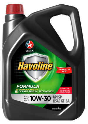 Havoline® FormulaSAE 10W-30Havoline® Formula is a resource conserving, multi-grade petrol engine oil for use in passenger car and light truck engines requiring low viscosity ILSAC GF-6A, API SP performance lubricants operating under all conditions. It's formulated with Deposit Shield™ to provide outstanding protection and value for cleaner, smoother-running engines. Havoline® with Deposit Shield™ is an advanced detergent formula that helps prevent deposit build-up for improved oil stability and increased engine durability. It also provides superior viscosity control to help maintain engine power and preserve fuel economy. |