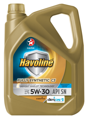 Havoline® Fully Synthetic C3SAE 5W-30Havoline® Fully Synthetic C3 is a premium performance, synthetic, multi-grade passenger car and light truck petrol and diesel engine oil that has been optimised to provide engine protection operating under all conditions. Havoline® Fully Synthetic C3 has been specifically developed for use in low emission engines fitted with the latest catalytic converter (petrol) or diesel particulate filter technology where ACEA C3, API SN or GM dexos2 performance categories are specified. |