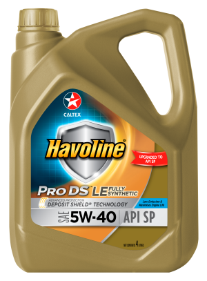 Havoline® ProDS Fully Synthetic LESAE 5W-40Havoline® ProDS Fully Synthetic LE is a premium performance, multi-grade oil formulated from selected synthetic base fluids and matching additive technology for use in passenger car and light truck gasoline and diesel engines under all operating conditions. It meets API SP and ACEA C3 specifications and a range of OEM requirements. |